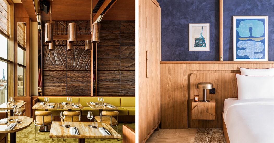 Paris’s 17th Arrondissement, near the city’s northwestern limits, is mostly residential, so it’s not typically front of mind for visitors to the French capital. But the opening of La Fondation, a 58-room hotel with interiors by the New York-based design firm Roman and Williams, might shift that mind-set. It’s part of a new 10-story complex that also includes an office space with rooftop gardens, a gym — which features a rock-climbing wall, 80-foot-long pool and multiple fitness rooms — and a spa with saunas, a hammam and treatment rooms. Hotel guests get access to all of this, along with two French restaurants — a classic bistro and a fine-dining option, both helmed by the local chef Thomas Rossi — and a rooftop bar that offers sweeping views spanning from the Sacre Coeur to the Eiffel Tower. For the hotel décor, Roman and Williams referenced the city’s late Modernist period: rooms feature color-blocked walls bordered by oak frames — a nod to Yves Saint Laurent’s 1965 Mondrian dress. In the common areas, large-scale commissions such as a wooden wall sculpture by the Croatian artisan Vedran Jakšić or the painted ceramic tiles by French artist Pierre Yves Canard, merge with the architecture. “There’s a constant interplay between refinement and rawness, fashion and function, Paris then and now,” says Robin Standefer, a co-founder of Roman and Williams. La Fondation opens April 28; from $440 a night, en.lafondationhotel.com.