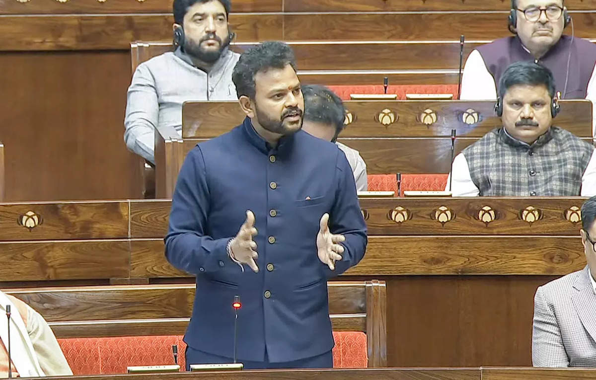 Union Civil Aviation Minister Kinjarapu Rammohan Naidu speaks in the Rajya Sabha during the Budget Session, in New Delhi on Monday.