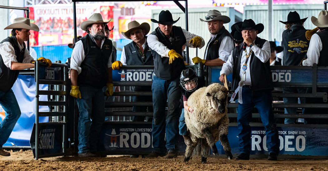 “Mutton bustin’,” where children lie on their bellies on top of an agitated sheep and try to hang on as the ovine shoots across a large arena, is one of the most beloved traditions at the Houston Livestock Show and Rodeo. Inevitably, the contestants slide off the sheep and face-plant into the dirt, with some coming away crying, others grinning proudly. Either outcome, the crowd at the largest livestock exhibition and rodeo in the world goes wild.