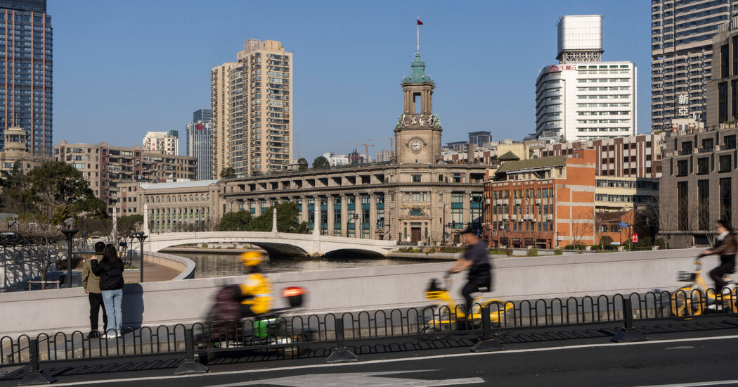 At a busy intersection near Wukang Mansion, a century-old landmark reminiscent of New York City’s Flatiron Building, the scene was oddly quiet, as barely audible electric cars and bikes whizzed by.